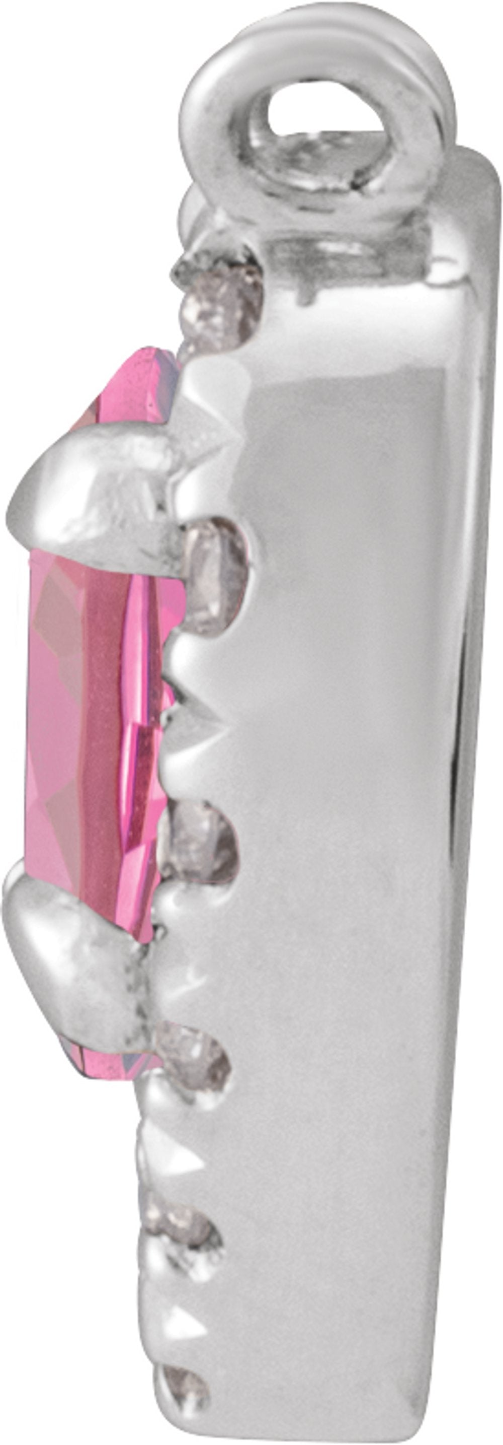 14K White Natural Pink Tourmaline & 1/8 CTW Natural Diamond French-Set Halo-Style Necklace Center