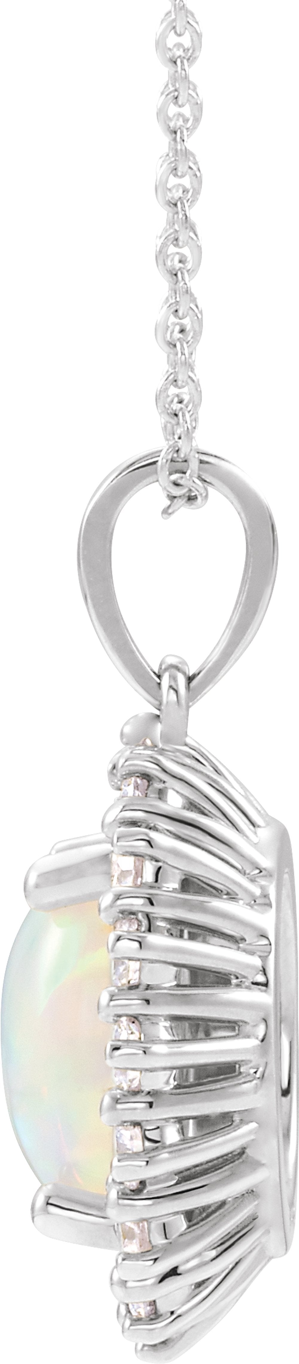 14K White Natural White Opal & 1/3 CTW Natural Diamond Halo-Style 16-18" Necklace