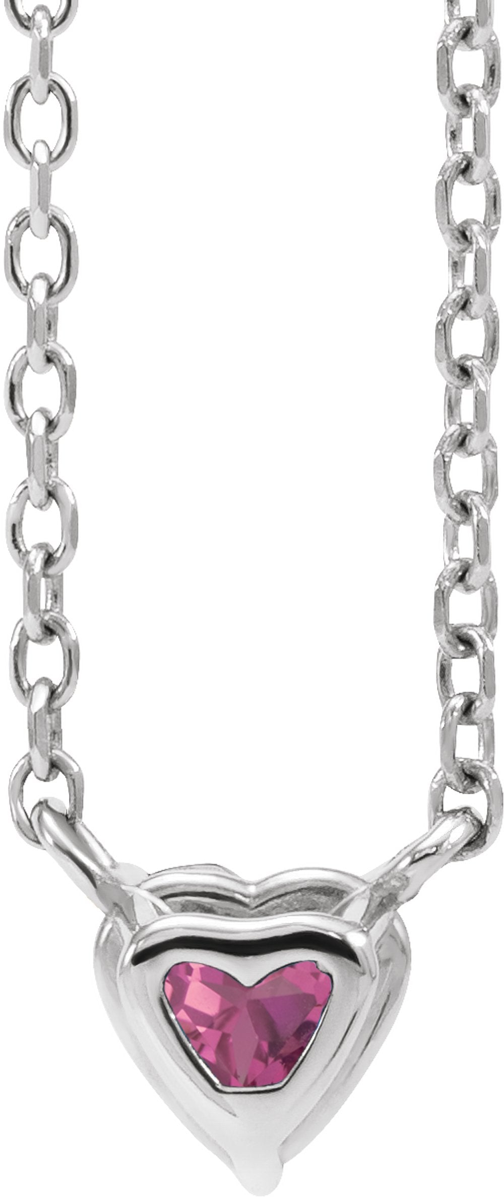 Sterling Silver Natural Pink Tourmaline Heart 16-18" Necklace