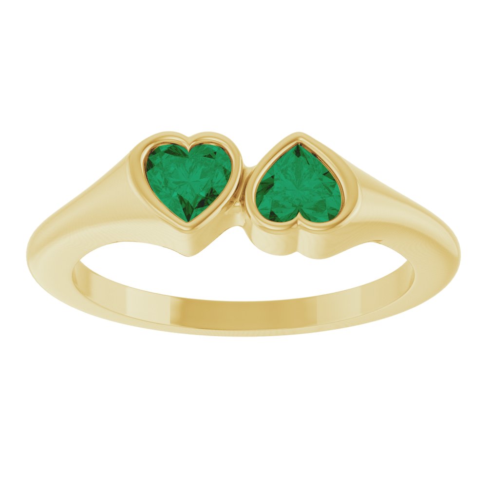 14K Yellow Gold Lab-Grown Emerald Two-Stone Ring