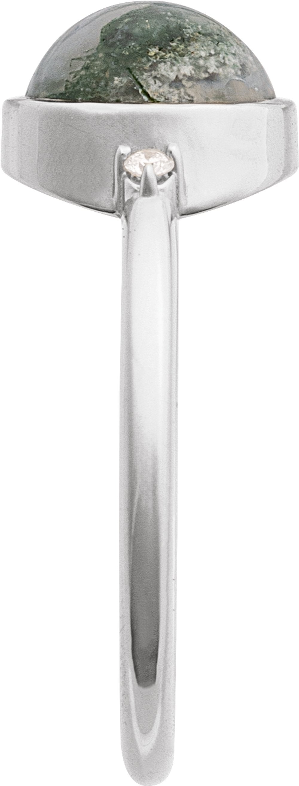 Description: Natural Moss Agate And .03 Ctw Natural Diamond Bezel-Set Cabochon Ring