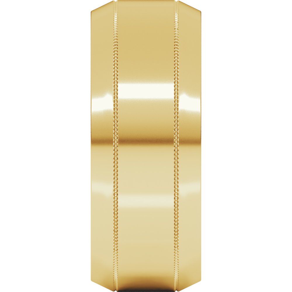 14K Yellow 8 mm Milgrain Beveled-Edge Comfort-Fit Flat Band Size 10.5