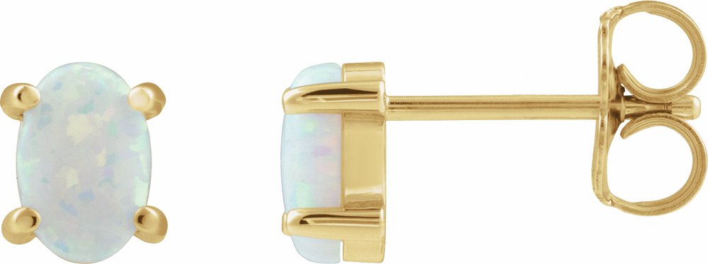 14K Yellow 6x4 mm Oval Lab-Grown White Opal Earrings