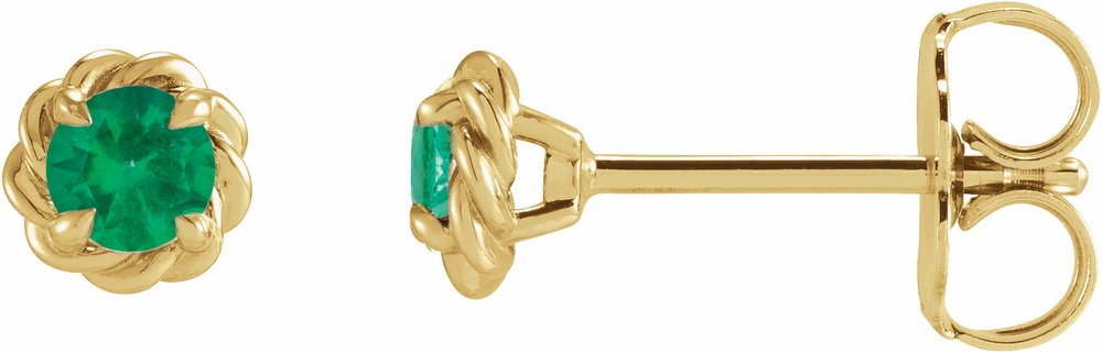 14K Yellow 3 mm Lab-Grown Emerald Claw-Prong Rope Earrings