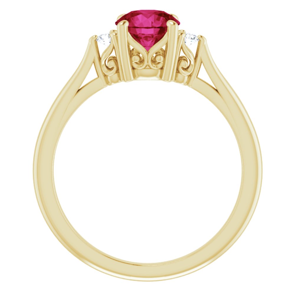 14K Yellow Lab-Grown Ruby & .06 CTW Natural Diamond Ring