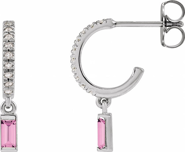 14K White Natural Pink Sapphire & .08 CTW Natural Diamond French-Set Hoop Earrings