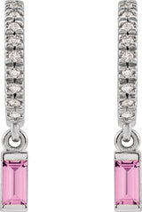 Description: Natural Pink Sapphire And .08 Ctw Natural Diamond French-Set Dangle Hoop Earrings