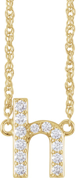 14K Yellow 1/8 CTW Natural Diamond Lowercase Initial H 16" Necklace
