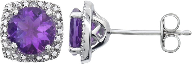 Sterling Silver Natural Amethyst & .015 CTW Natural Diamond Earrings