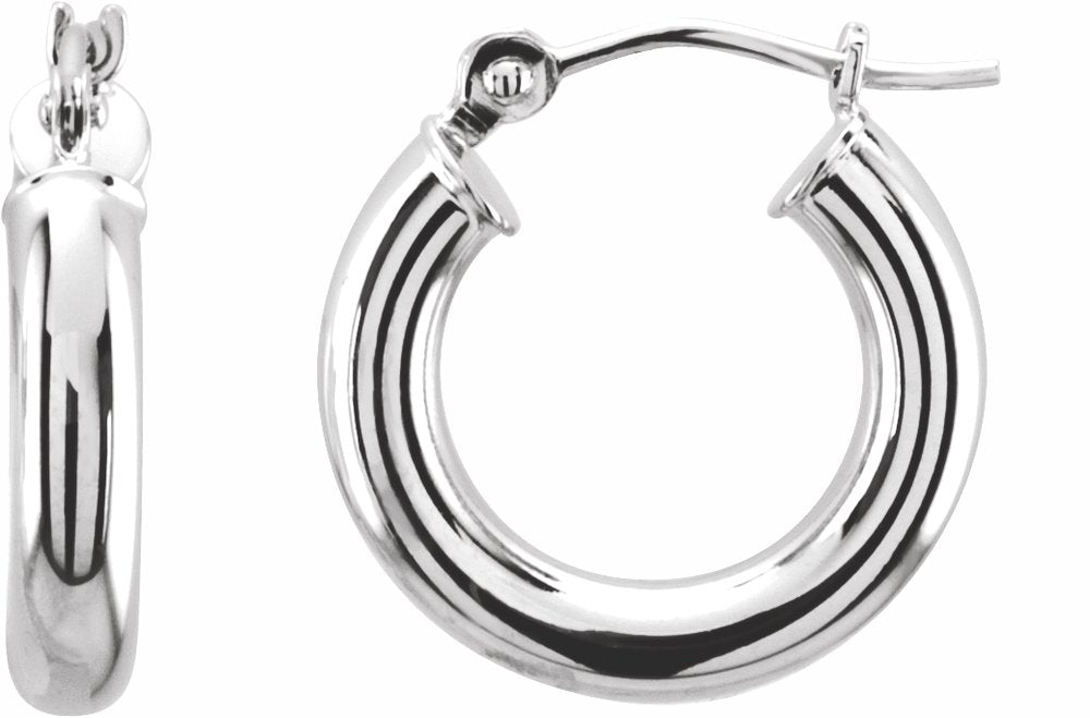 14K White Tube 15 mm Hoop Earrings