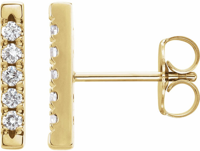 14K Yellow 1/8 CTW Natural Diamond French-Set Bar Earrings