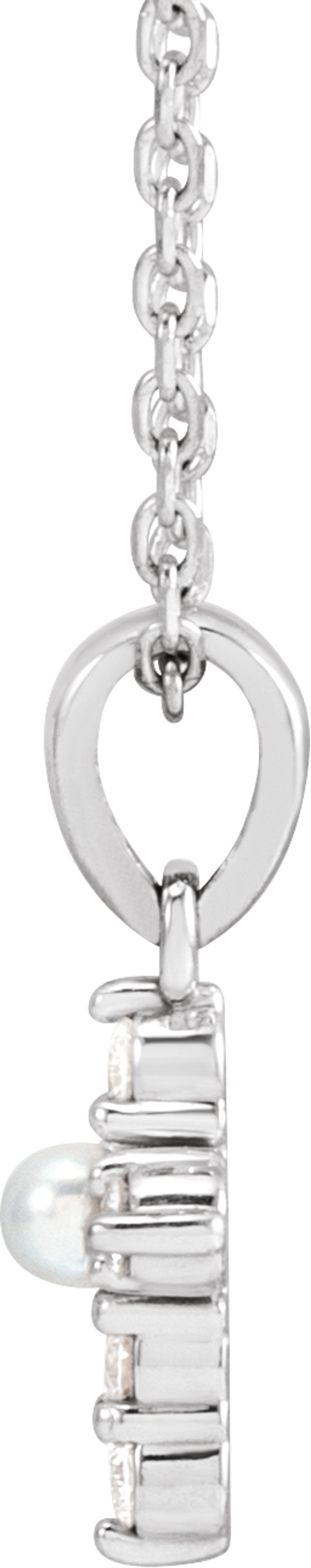 14K White Cultured White Seed Pearl & .07 CTW Natural Diamond Cross 16-18" Necklace