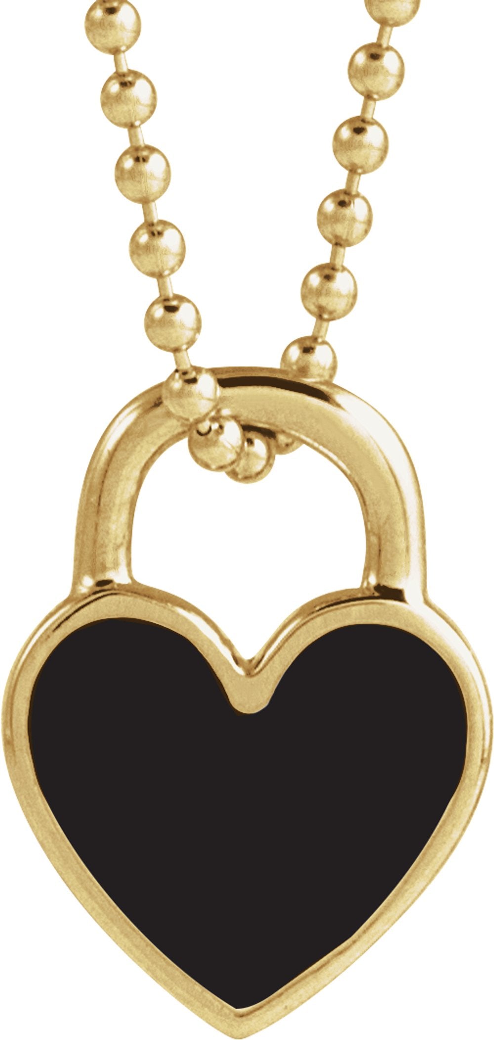 14K Yellow Gold Black Enamel Heart 18" Necklace