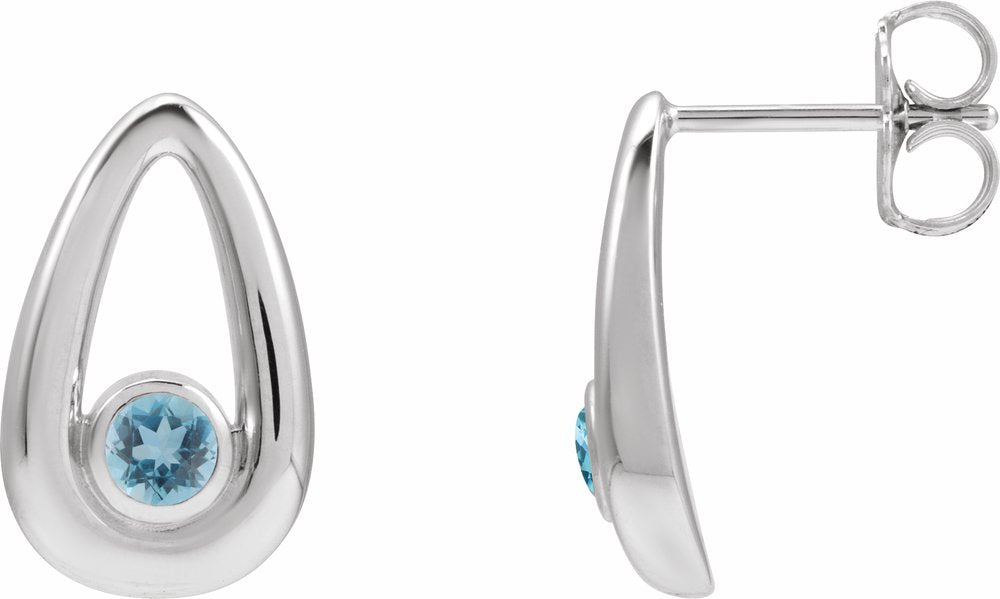 Description: Natural Aquamarine Solitaire Geometric Earrings