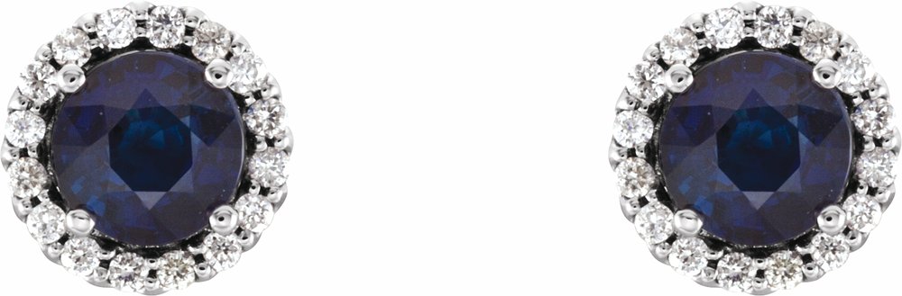 14K White Gold 5 mm Natural Blue Sapphire & 1/8 CTW Natural Diamond Earrings