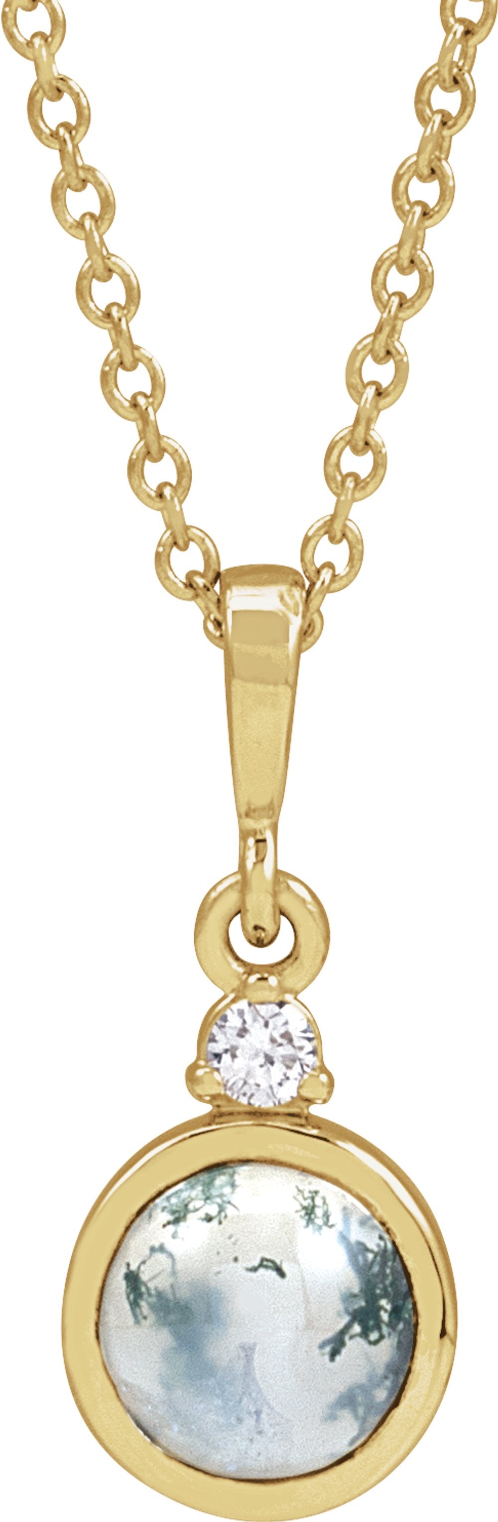 14K Yellow Gold 6 mm Natural Moss Agate & .03 CTW Natural Diamond 16-18" Necklace