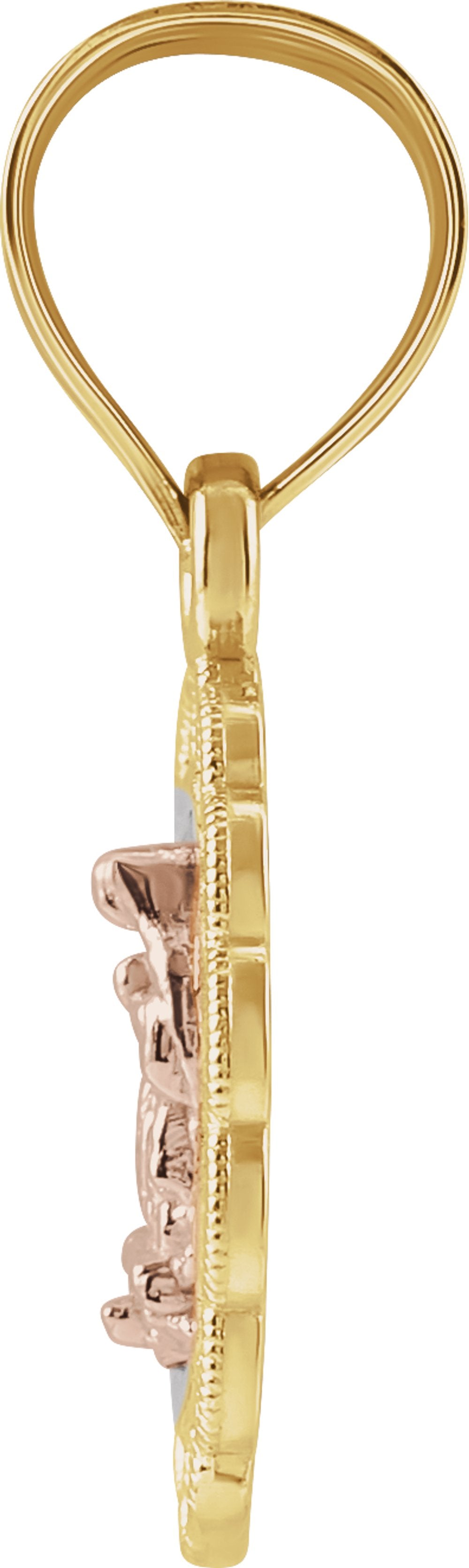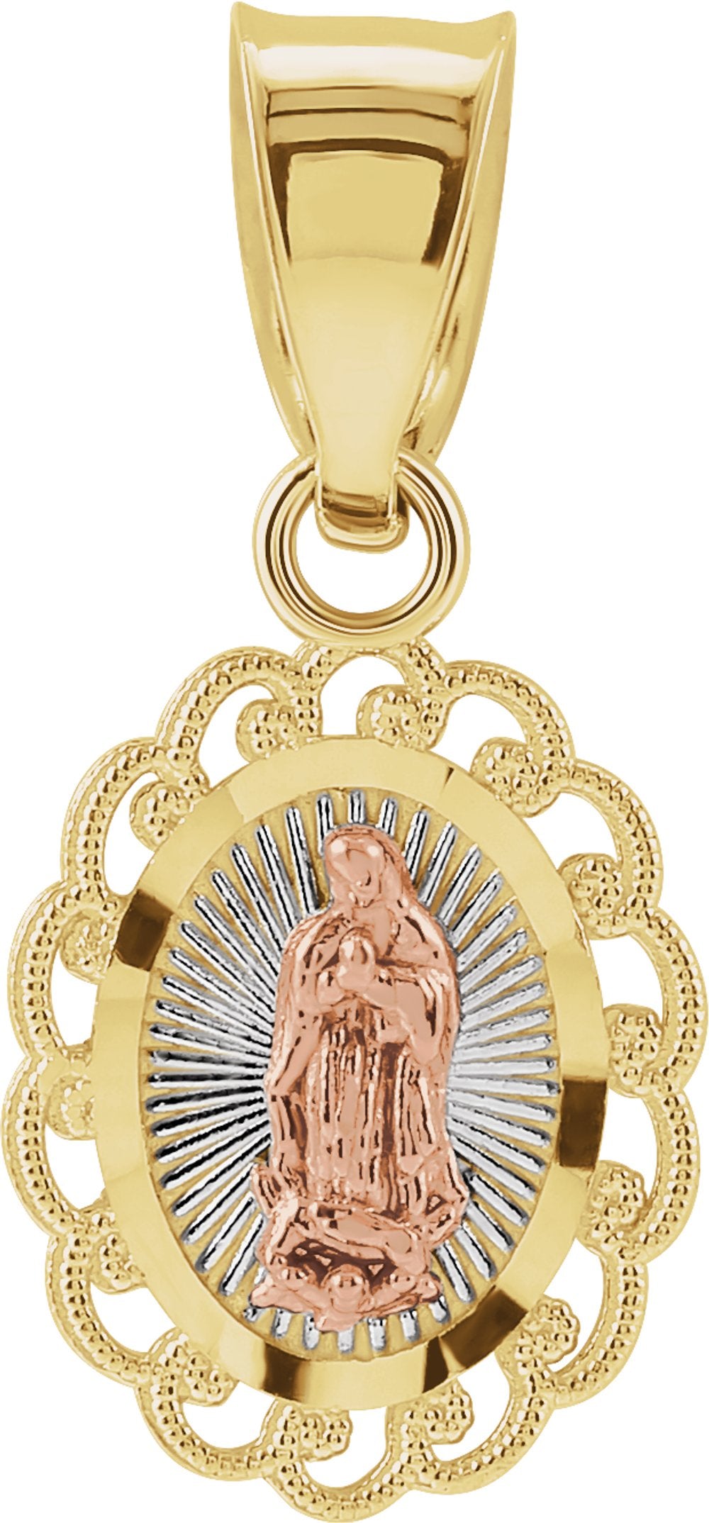 14K Yellow/Rose 11x9 mm Oval Our Lady of Guadalupe Pendant with Rhodium Plating