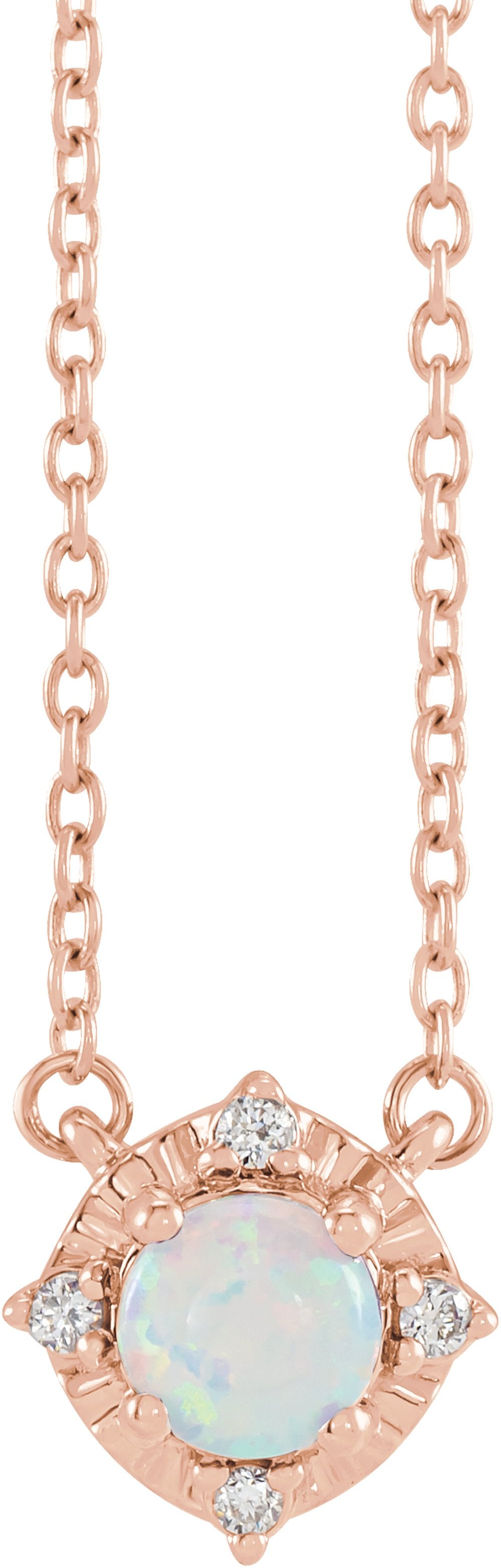 14K Rose Lab-Grown White Opal & .04 CTW Natural Diamond Halo-Style 18" Necklace
