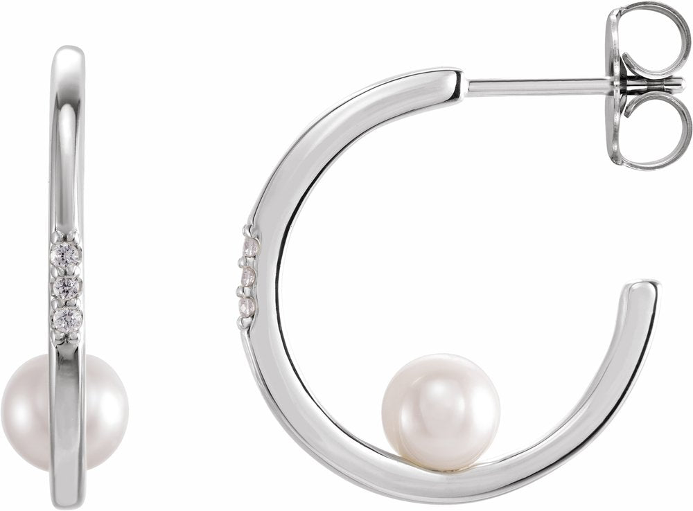 Platinum Cultured White Freshwater Pearl & .025 CTW Natural Diamond Hoop Earrings