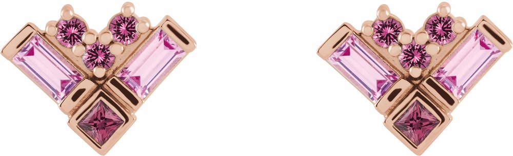 14K Rose Natural Pink Multi-Gemstone Cluster Earrings