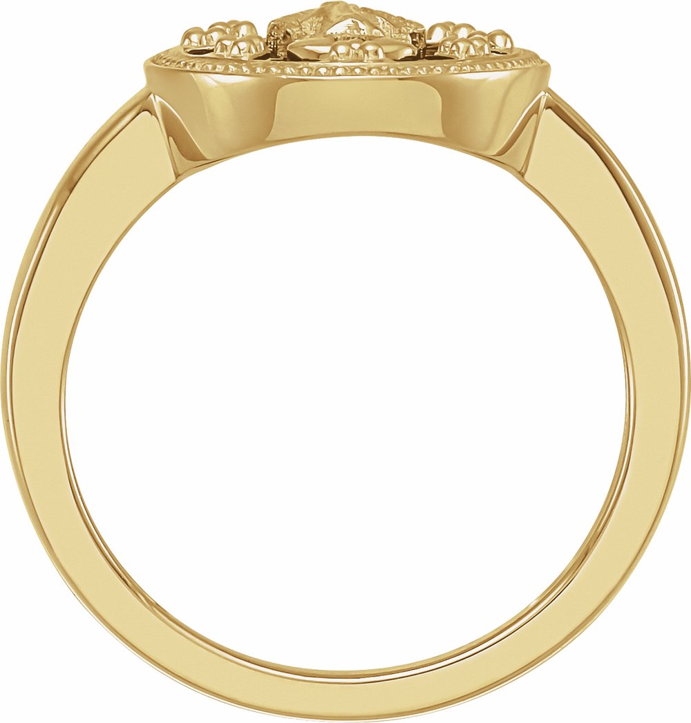 14K Yellow Oval Black Enamel Miraculous Medal Ring