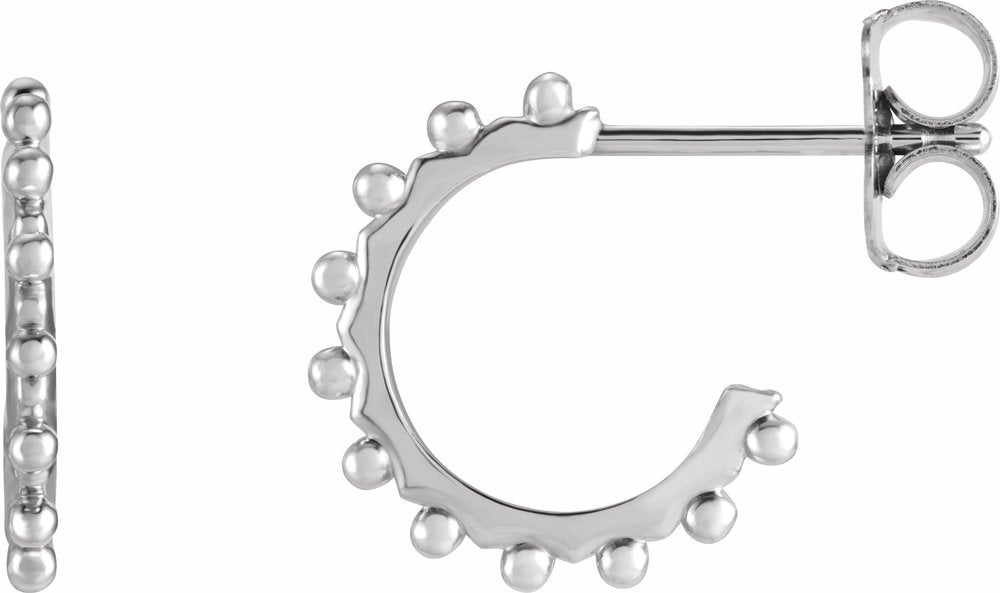 14K White Beaded 12.1 mm Hoop Earrings