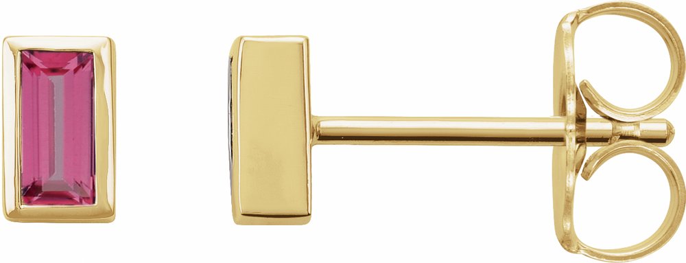 14K Yellow Gold Natural Pink Tourmaline Bezel-Set Earrings