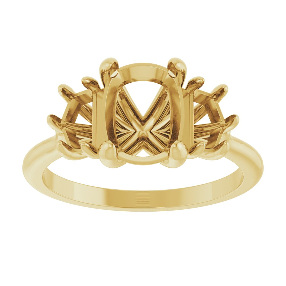 14K Yellow Gold 8x6 mm Elongated Cushion Three-Stone Engagement Ring Mounting