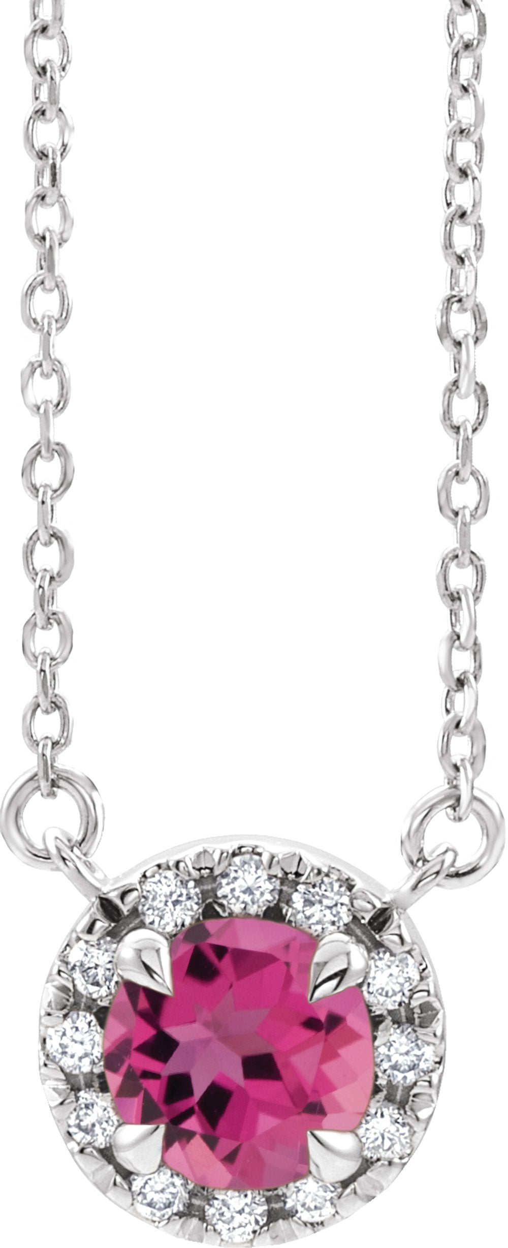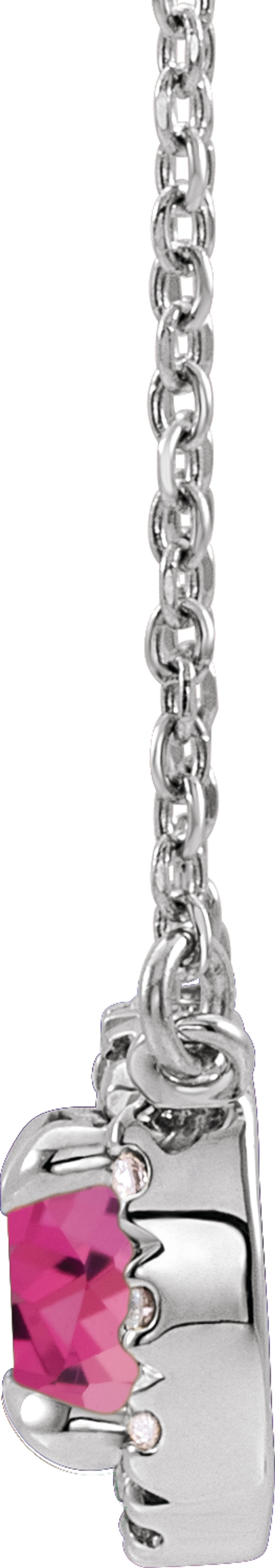 Sterling Silver 3.5 mm Natural Pink Tourmaline & .03 CTW Natural Diamond 16" Necklace