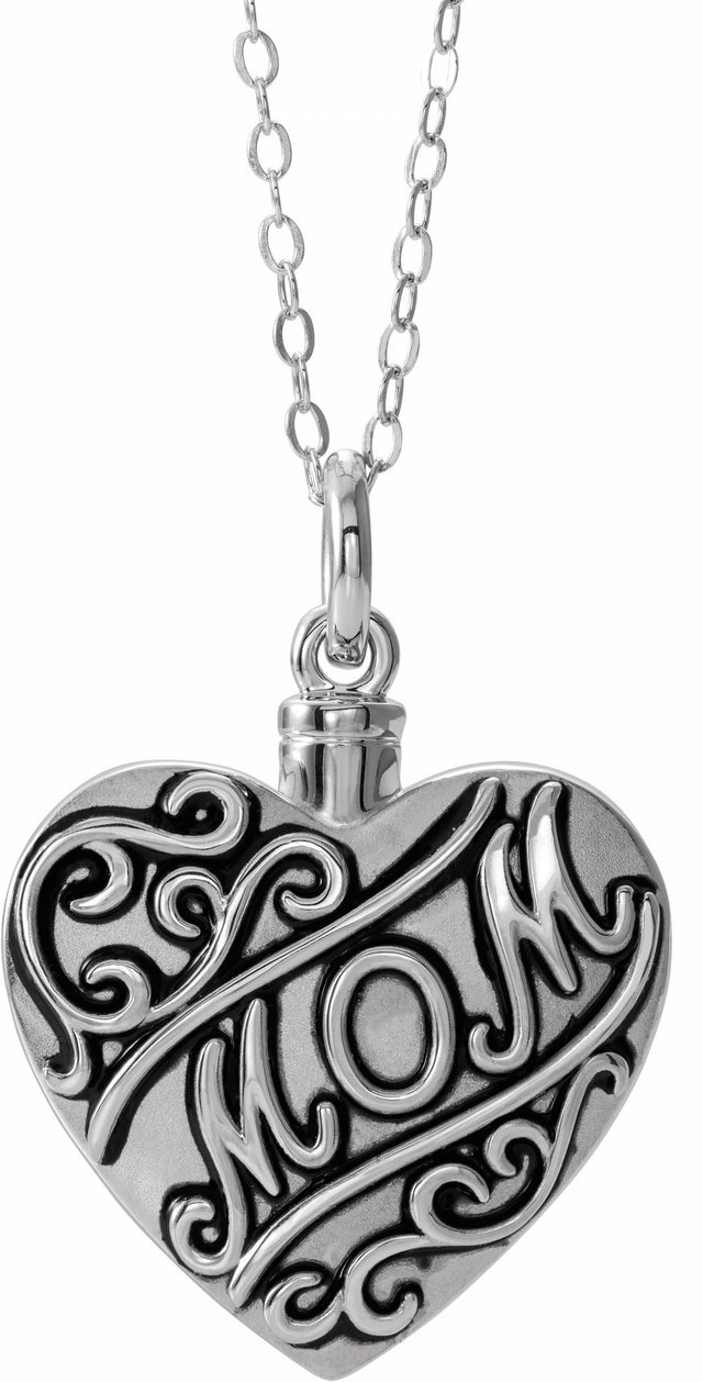Sterling Silver Mom Heart Ash Holder 18" Necklace