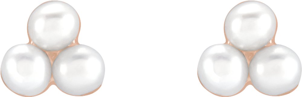 14K Rose Cultured White Freshwater Pearl Cluster Earrings