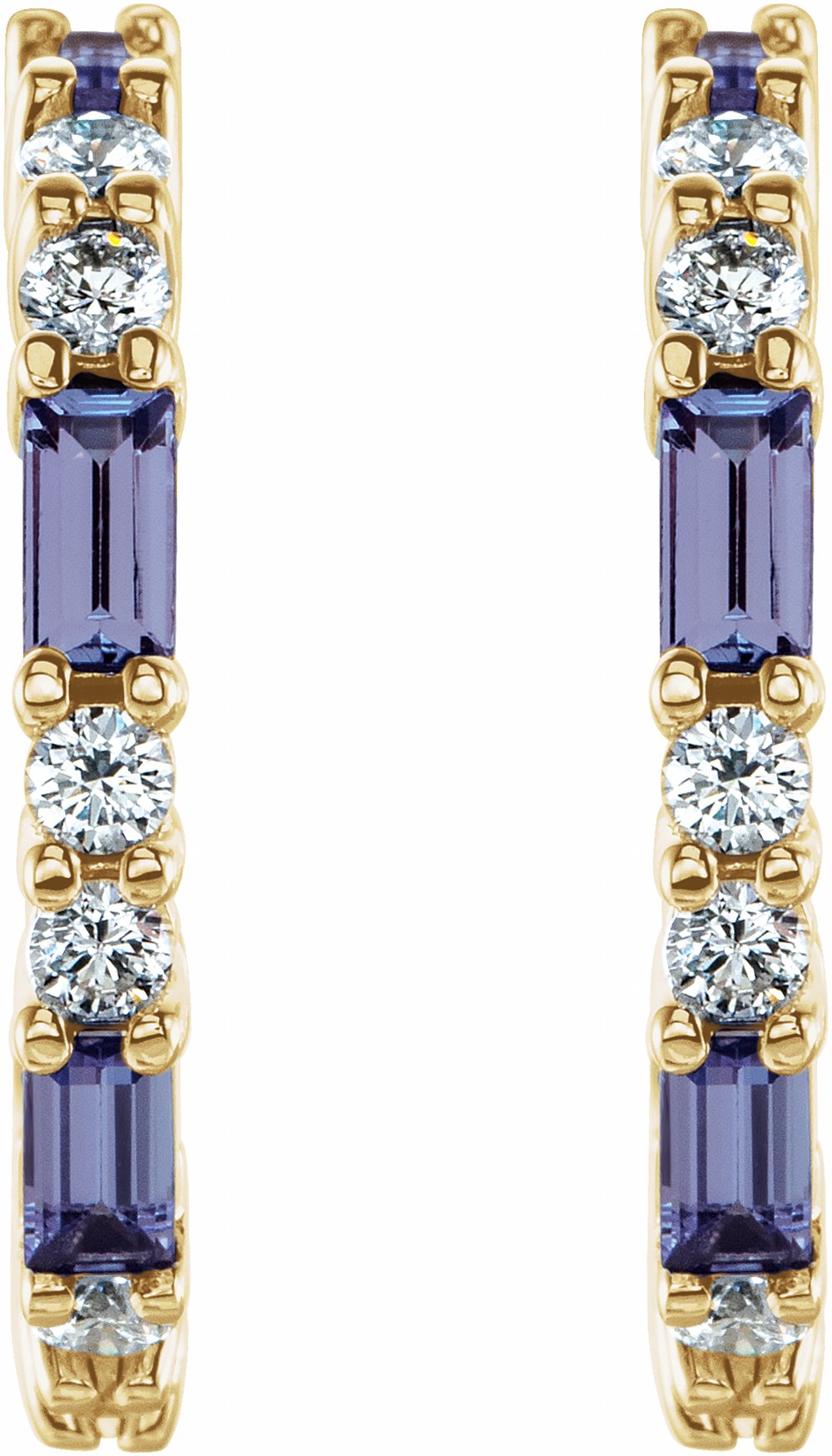 14K Yellow Gold Natural Tanzanite & 1/2 CTW Natural Diamond 17.2 mm Hoop Earrings