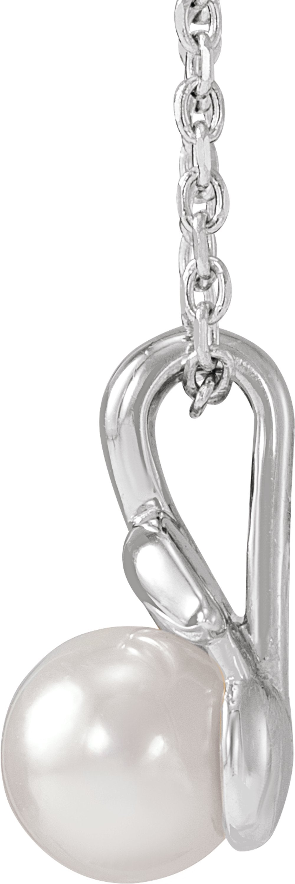 Sterling Silver 6 mm Cultured White Akoya Pearl Floral 16-18" Necklace