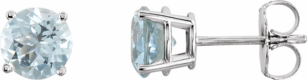 14K White Gold 6 mm Natural Aquamarine Earrings