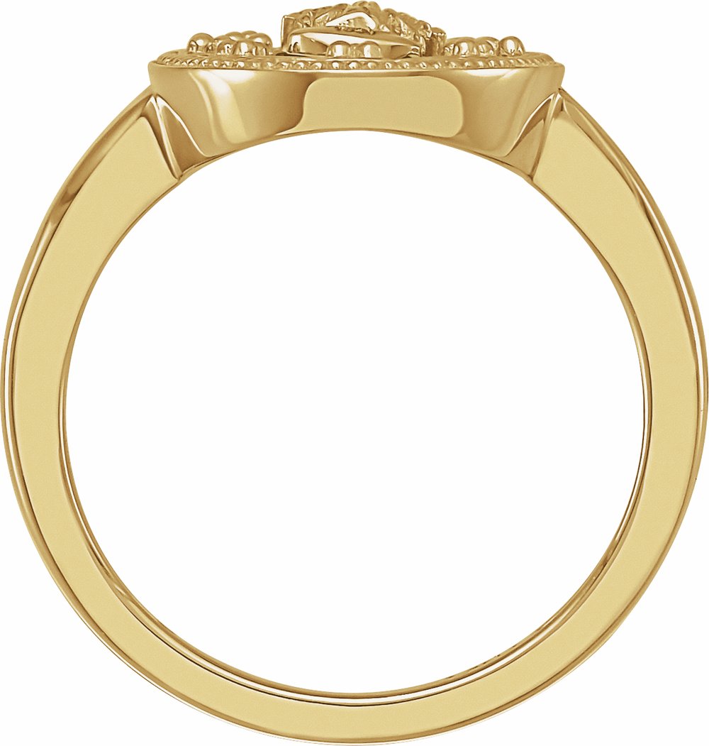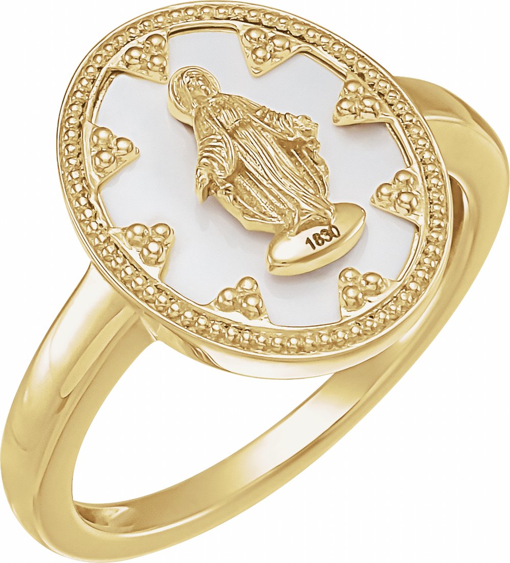 14K Yellow Oval White Enamel Miraculous Medal Ring