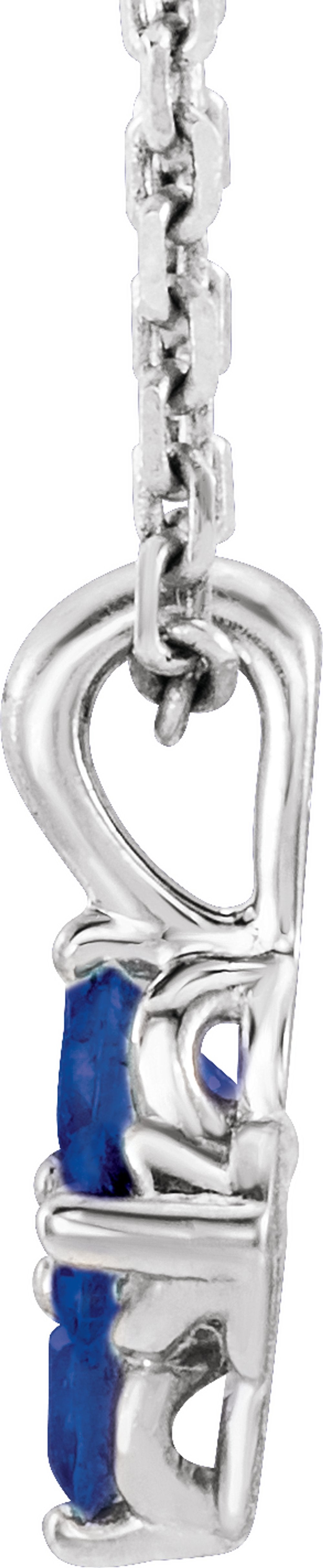 14K White Natural Blue Sapphire Youth 16-18" Necklace