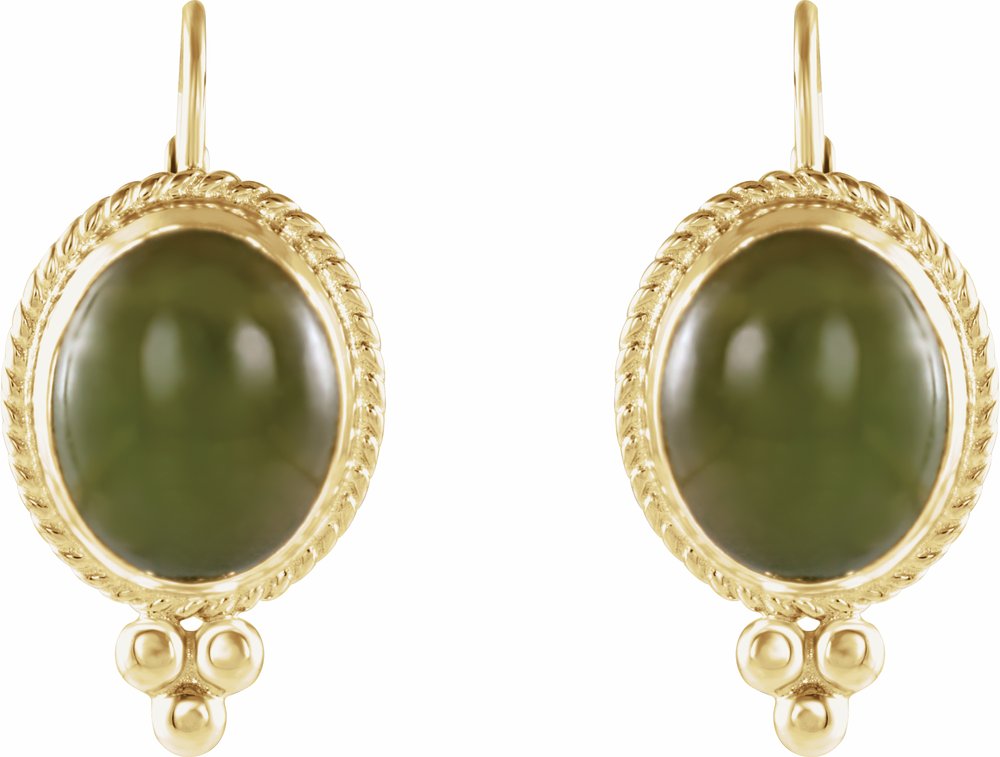 14K Yellow Natural Nephrite Jade Cabochon Earrings