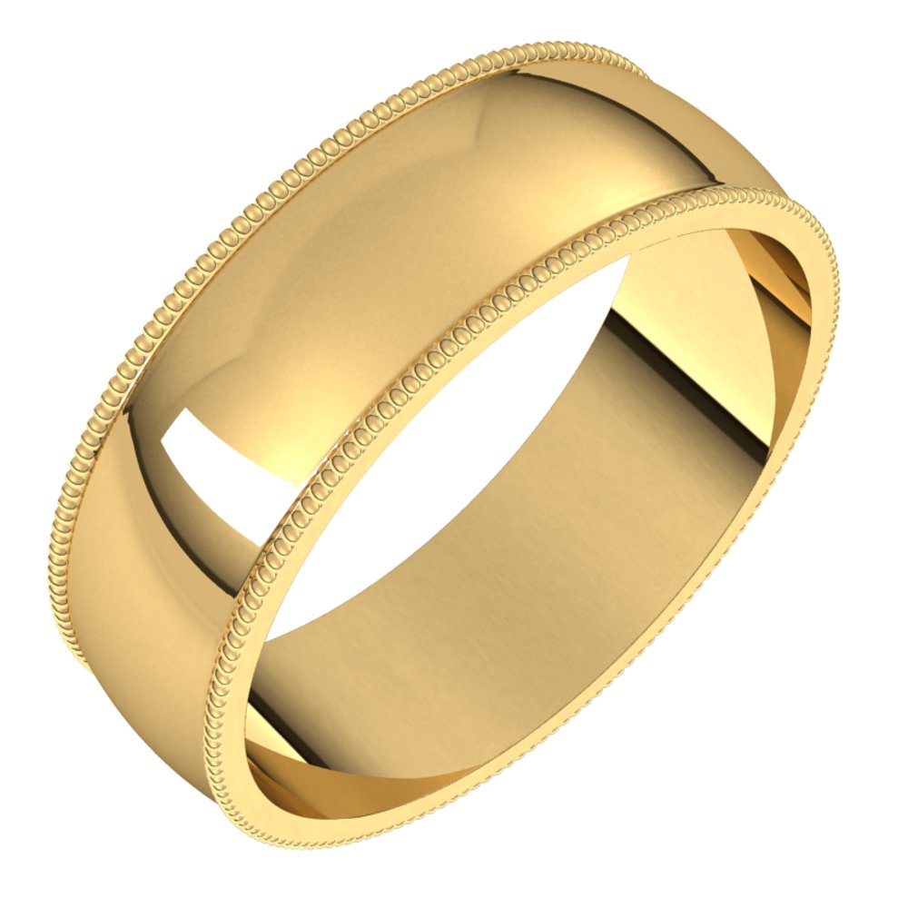 14K Yellow 6 mm Milgrain Half Round Light Band