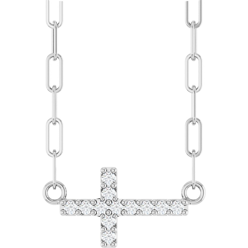 Description: .05 Ctw Natural Diamond Sideways Cross Paperclip Necklace