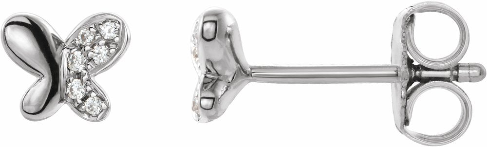 Description: .04 Ctw Natural Diamond Butterfly Youth Earrings With Backs