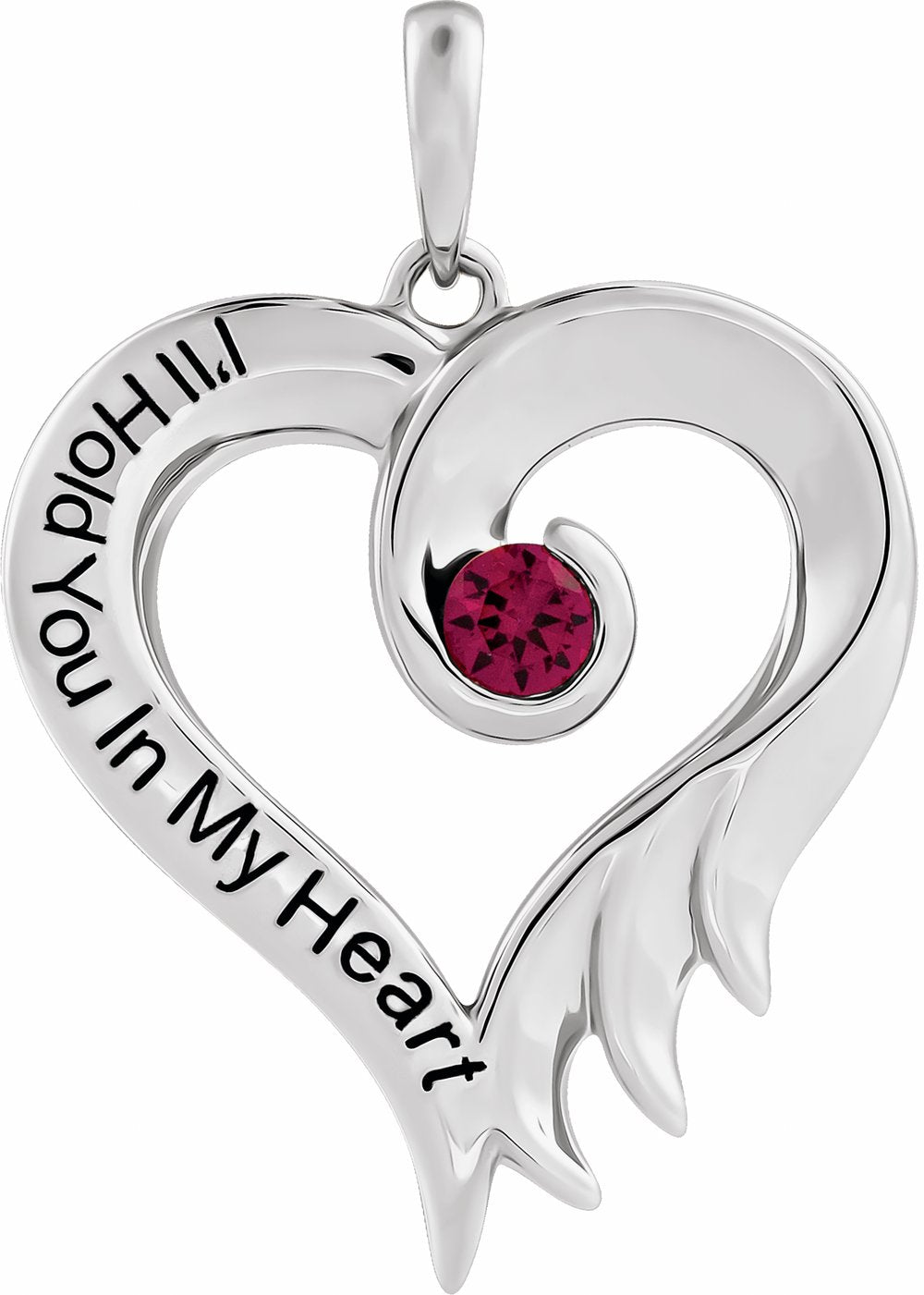 Description: Lab-Grown Ruby Heart Pendant With Engraving I'll Hold You In My Heart