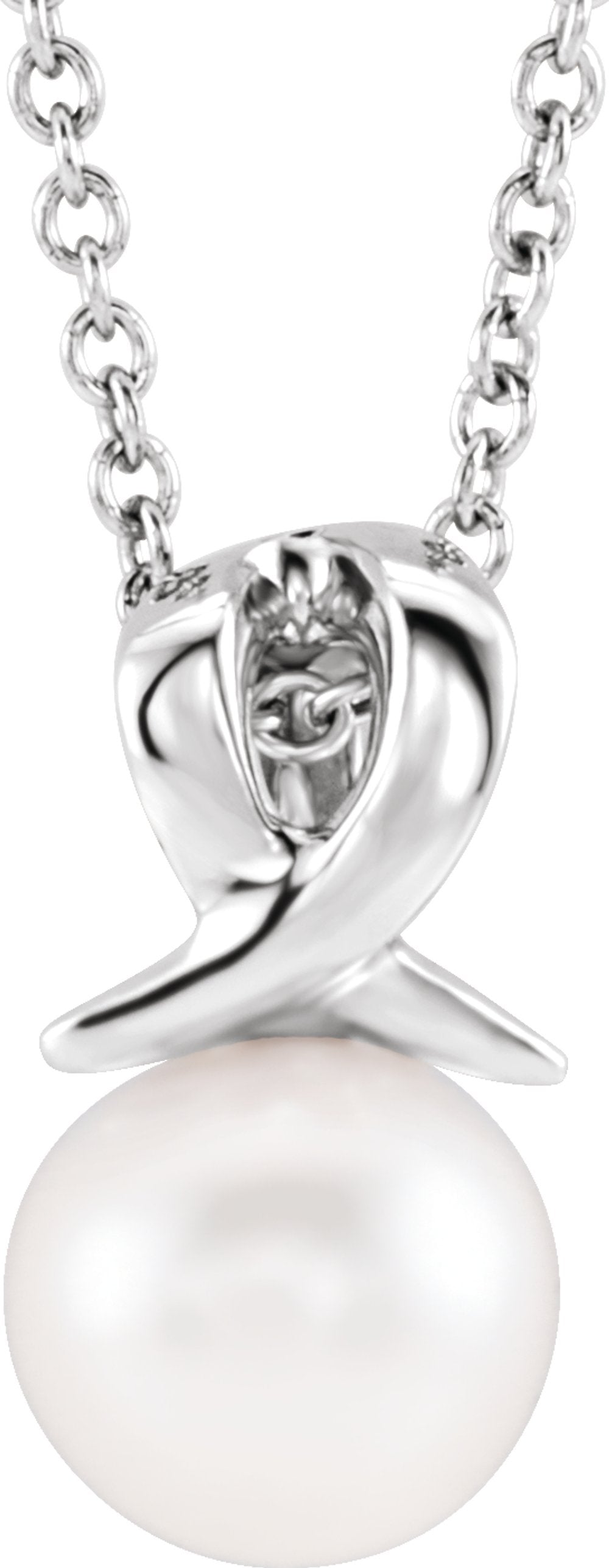 Description: Cultured White Freshwater Pearl Bypass Necklace