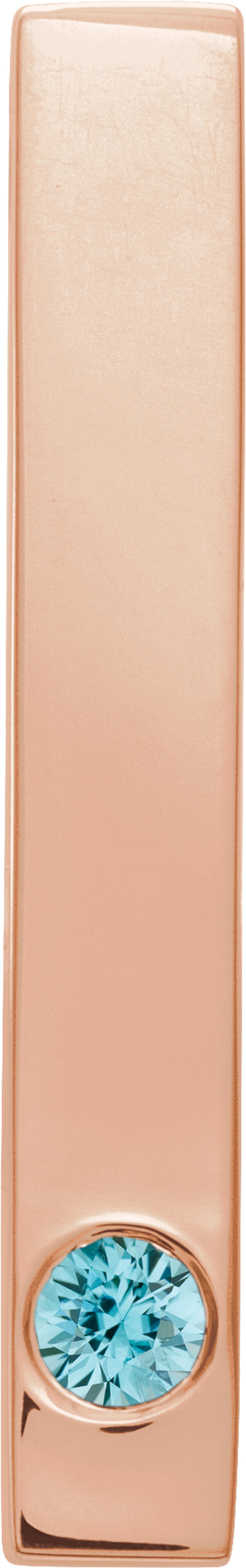 14K Rose Natural Blue Zircon Family Engravable Bar Pendant