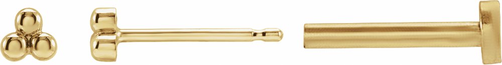 14K Yellow 3 Beads Stud Earrings