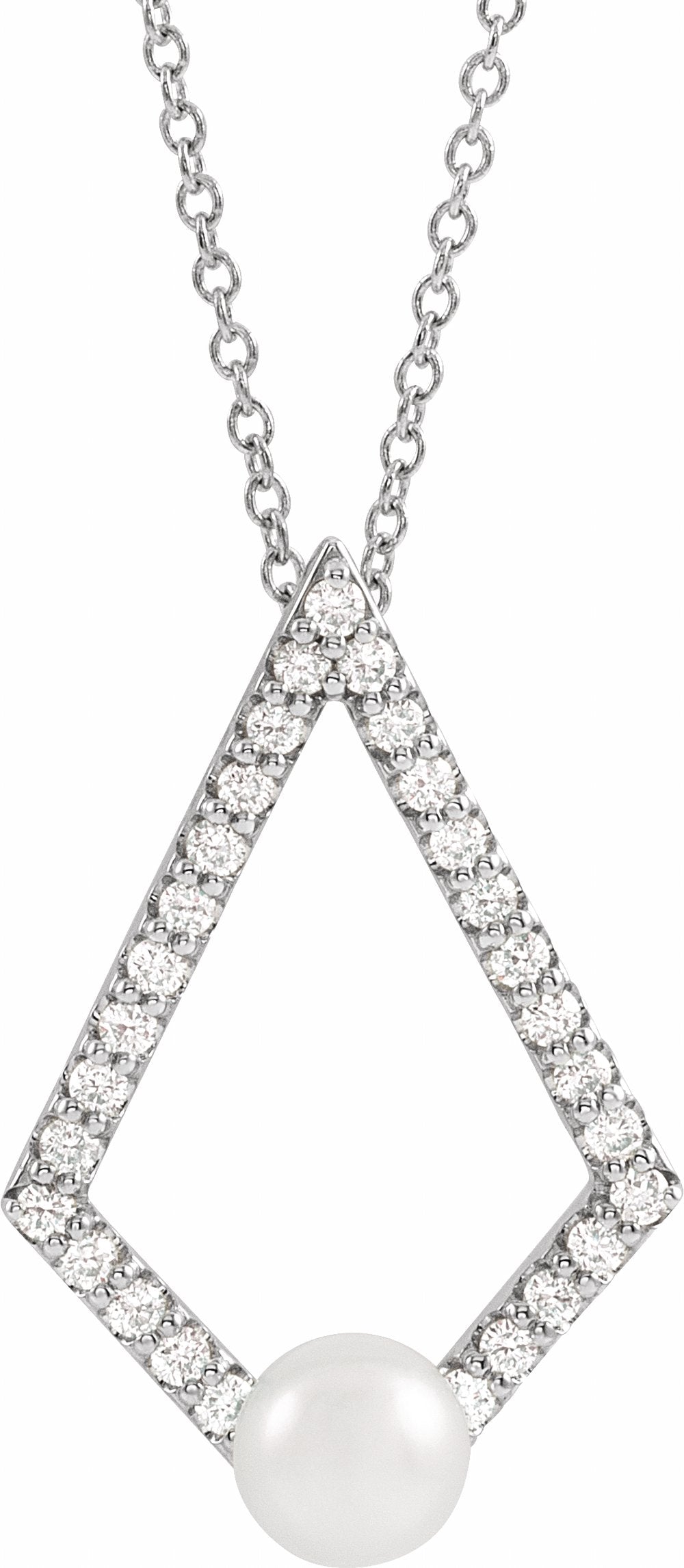 14K White Cultured White Freshwater Pearl & 1/4 CTW Natural Diamond Geometric 16-18" Necklace