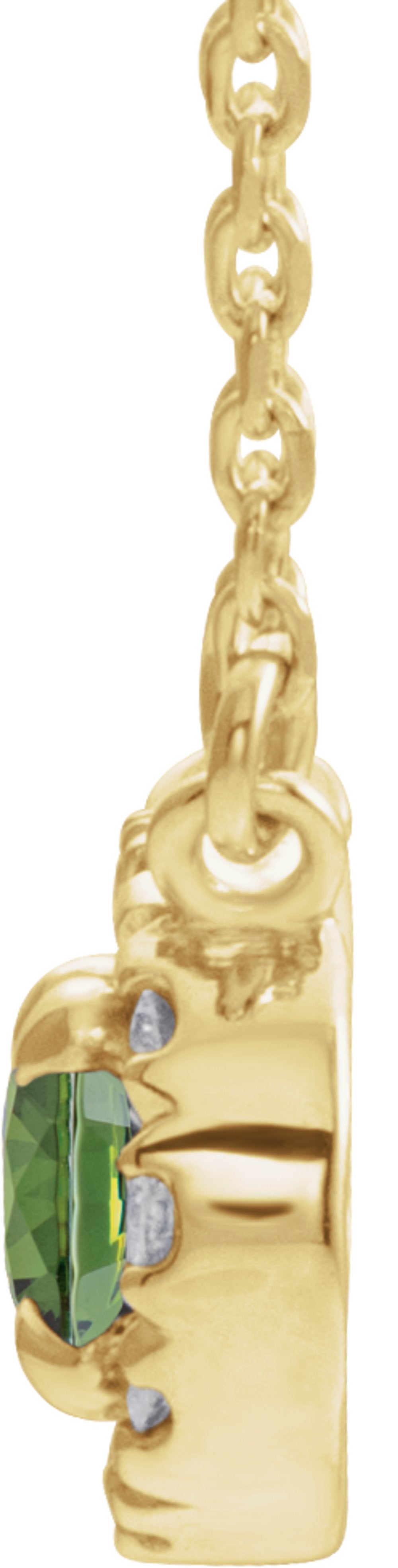 Description: Natural Peridot And 1/6 Ctw Natural Diamond Necklace