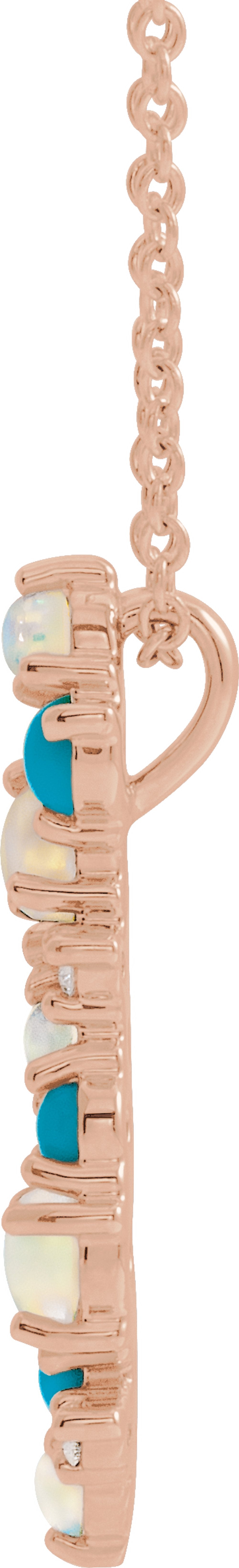 14K Rose Natural Ethiopian Opal Turquoise & .03 CTW Natural Diamond 16-18" Necklace