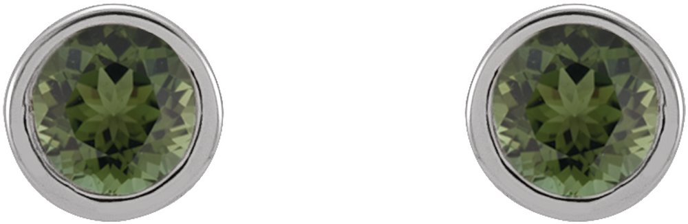 14K White 2.5 mm Round Natural Green Tourmaline Micro Bezel-Set Earrings