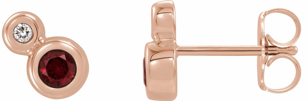 14K Rose 3 mm Natural Mozambique Garnet & .03 CTW Natural Diamond Earrings