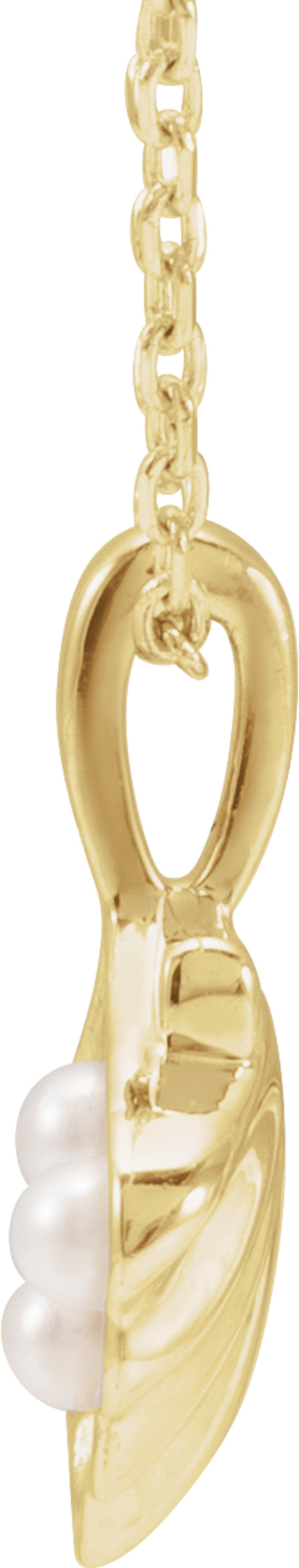 14K Yellow 3-Stone Cultured White Seed Pearl Family Shell 16-18" Necklace